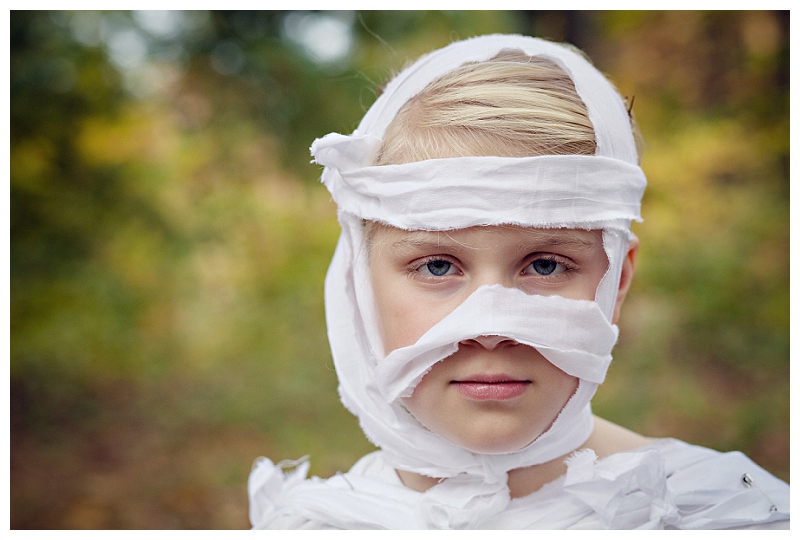 If you ever decide to do this – buy more than 3 yards of fabric. We went through it pretty quick and I felt we could have used at least double that! Super easy though – white long sleeved shirt, white leggings underneath and wrap away with torn fabric strips! We used safety pins tonight (as opposed to the church party last night where she came unraveled pretty quickly) and Rachel even told me they made her costume look MORE authentic. Only she didn’t use the word “authentic”. I’m not THAT good of a homeschooling mom.